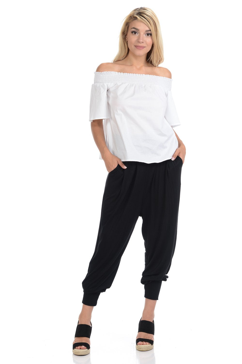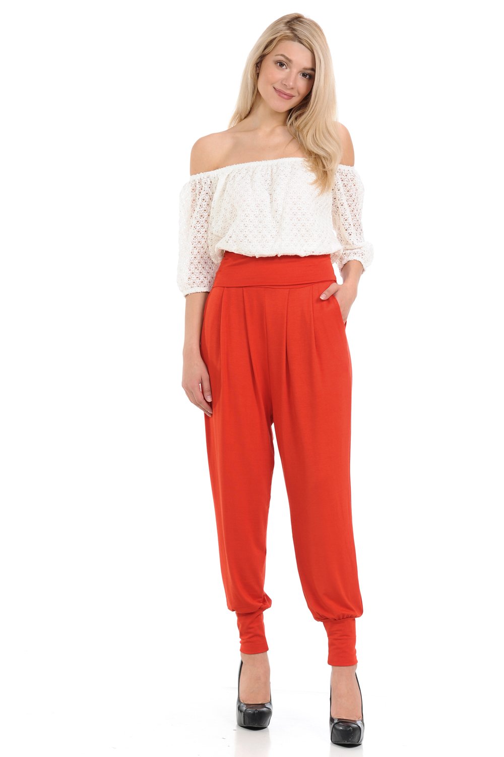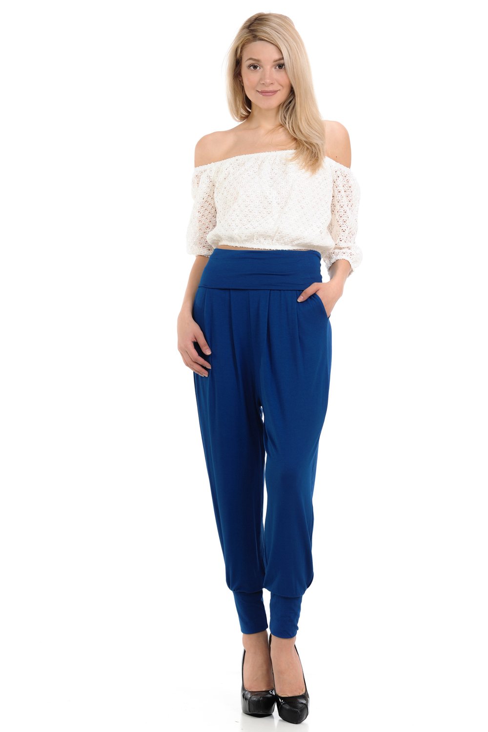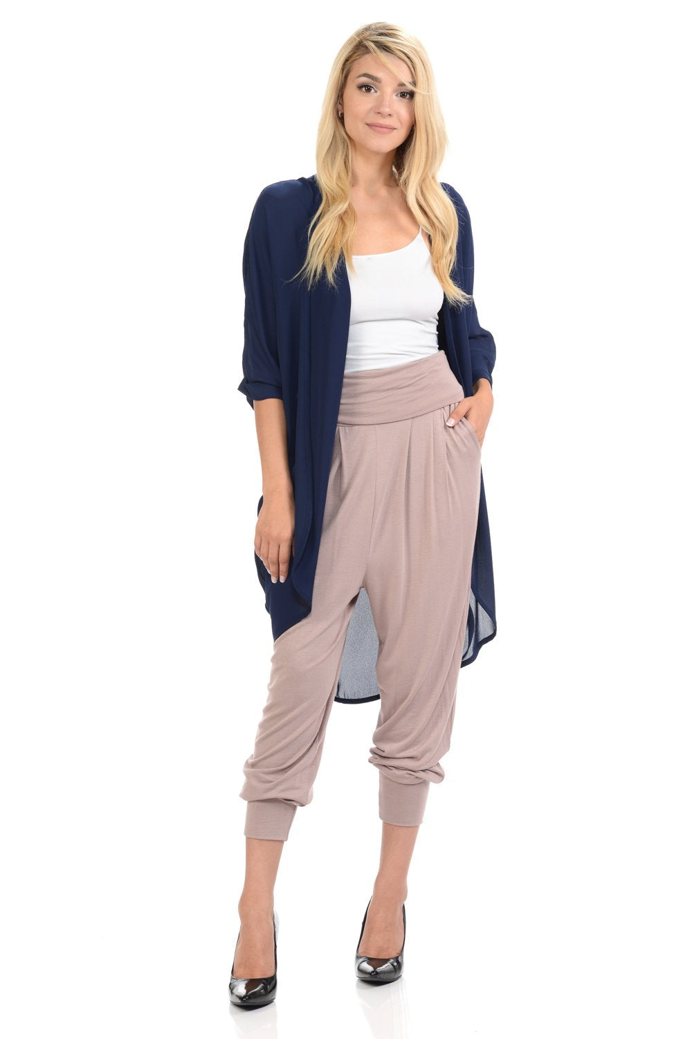 Among many alternatives for the now common skinny jeans, wide leg pants and jogger pants, harem pants are one of the easiest and most comfortable to wear. For a chic and modern style, match it with a tailored leather jacket, silk blouse and shimmering pumps. When doing a casual look, opt for a loose top, sneakers and statement necklace.
