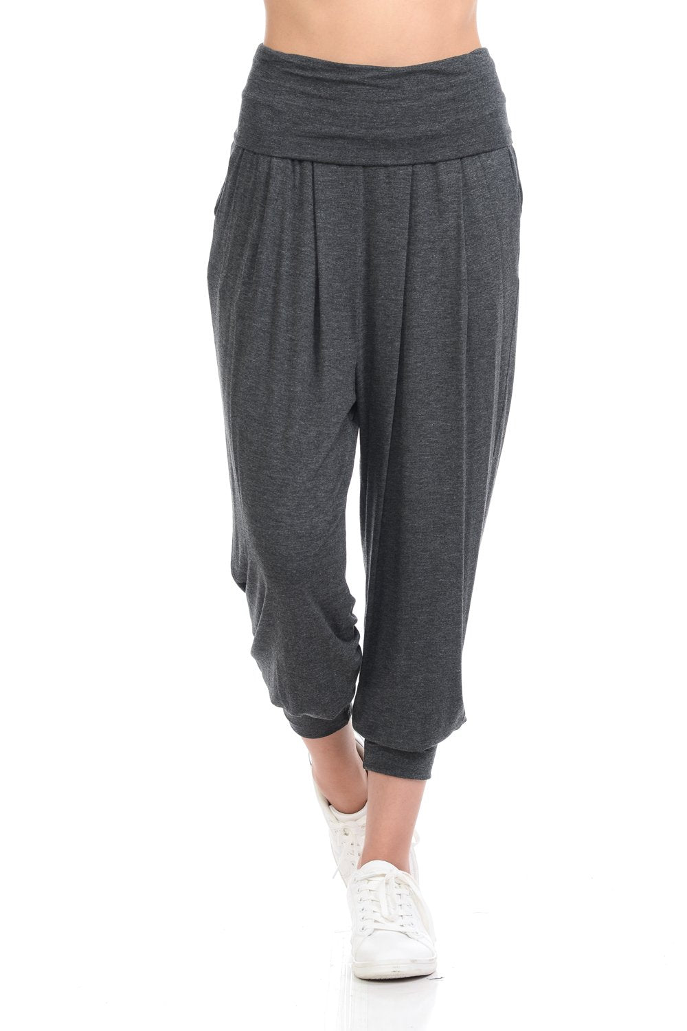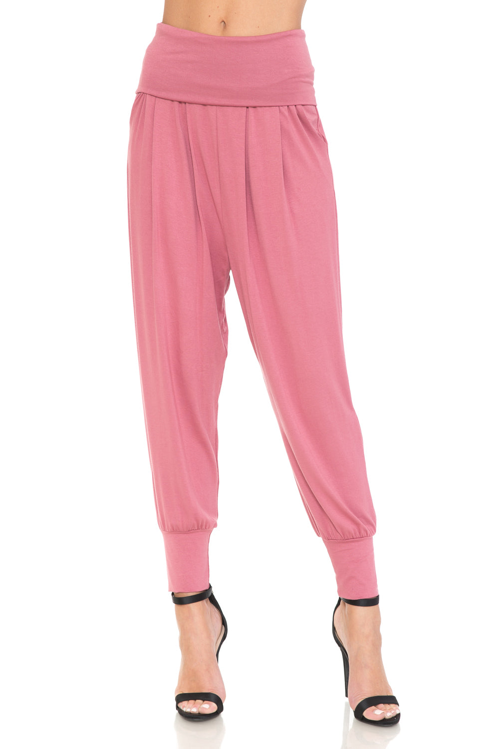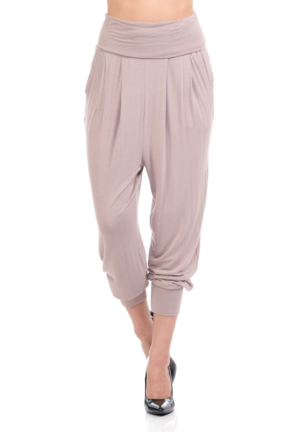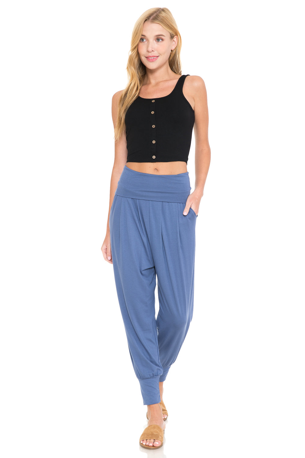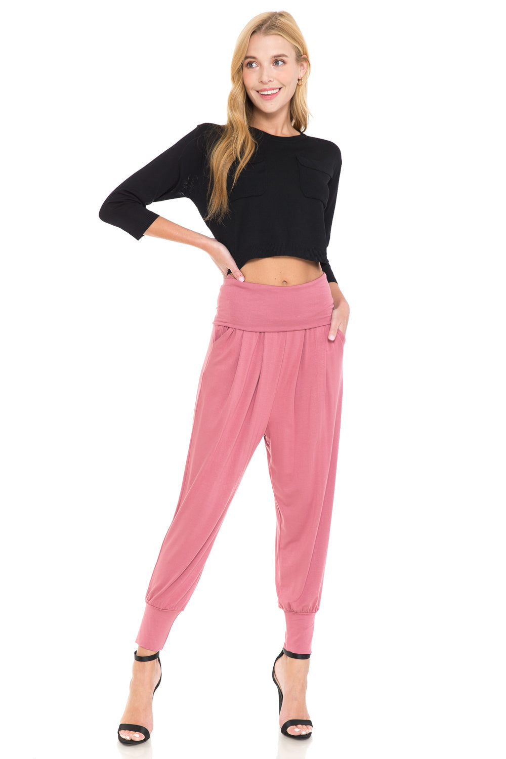 - This relaxed pants feature fold-over banded waist, tapered leg with cuffs, pull on closure and concealed side pockets. They are made of soft jersey knit that has great stretch.