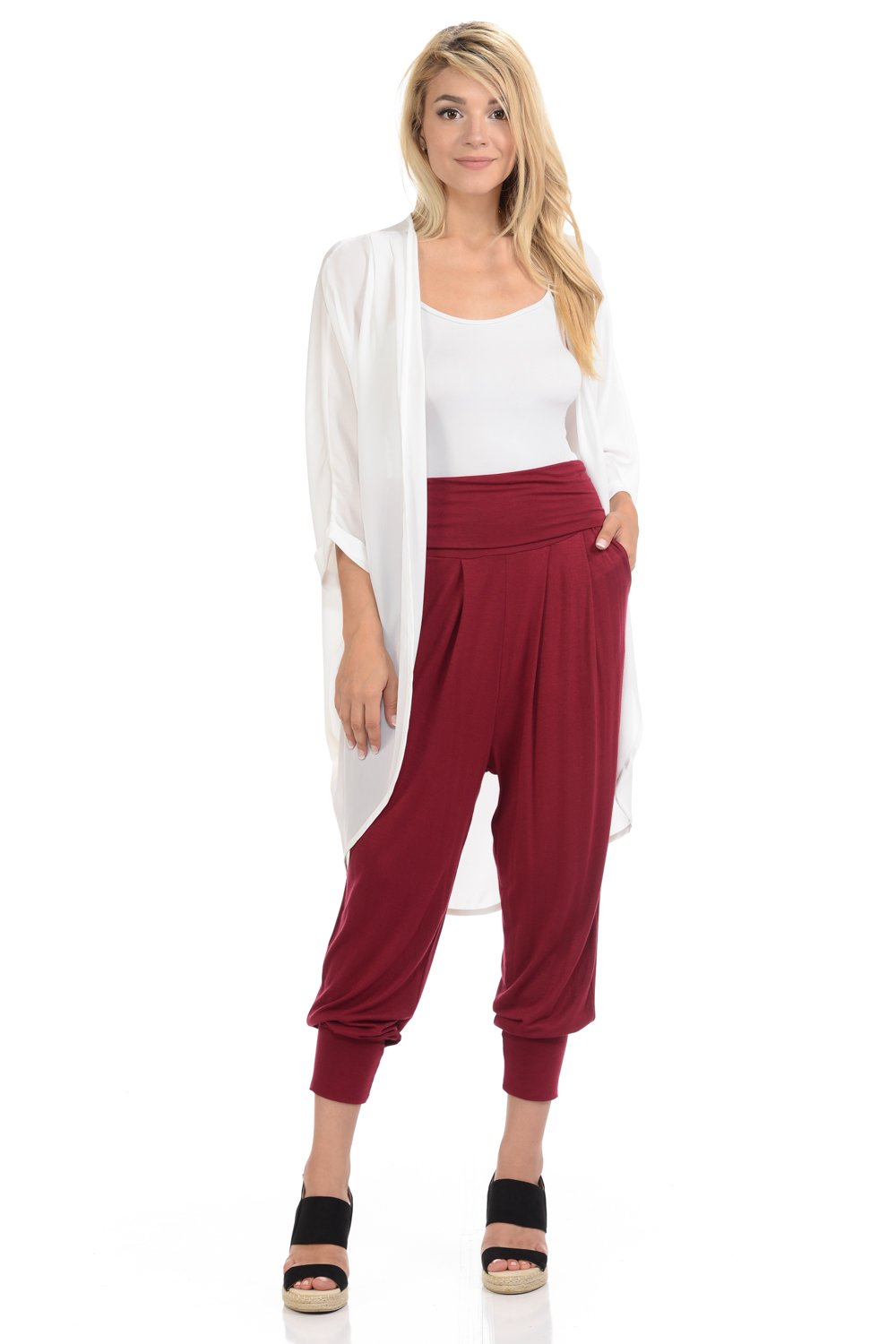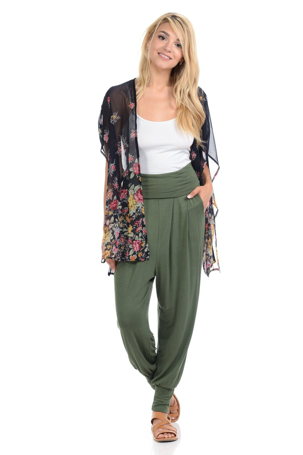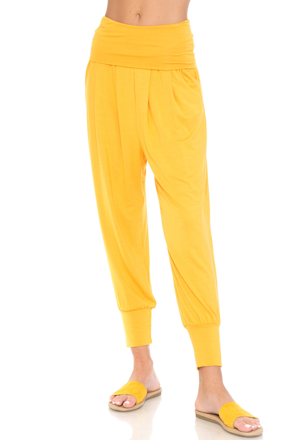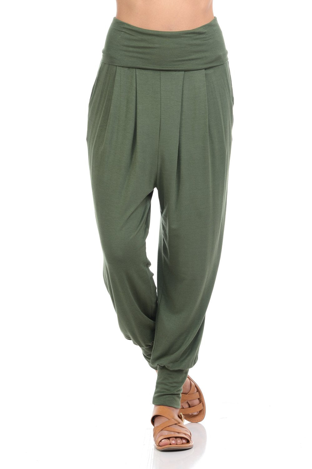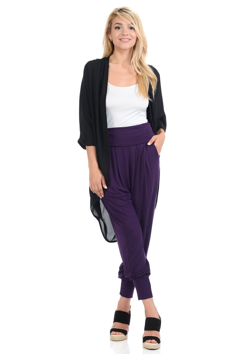 - This relaxed pants feature fold-over banded waist, tapered leg with cuffs, pull on closure and concealed side pockets. They are made of soft jersey knit that has great stretch.