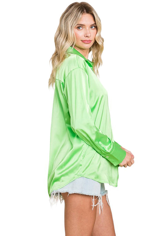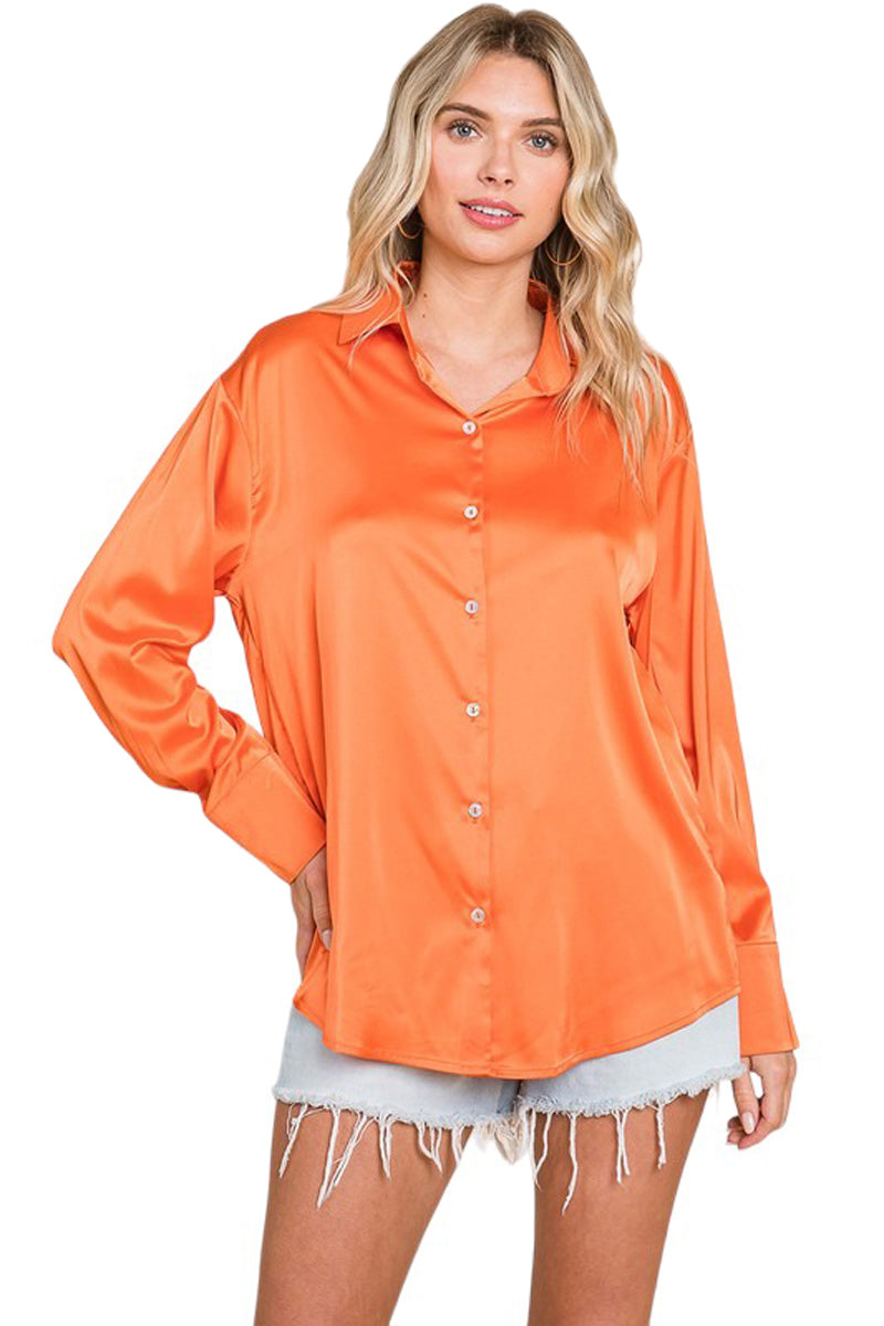 The Collared Satin Button Down Blouse Shirt from Iconic Luxe combines the elegance of silky fabric with the classic style of a collared shirt, making it a versatile and sophisticated addition to a woman's wardrobe. It features a button-down front, allowing it to be easily opened and closed. This blouse can be dressed up with tailored pants or a skirt for formal or professional settings. It can also be paired with jeans or shorts for a more casual or chic look.