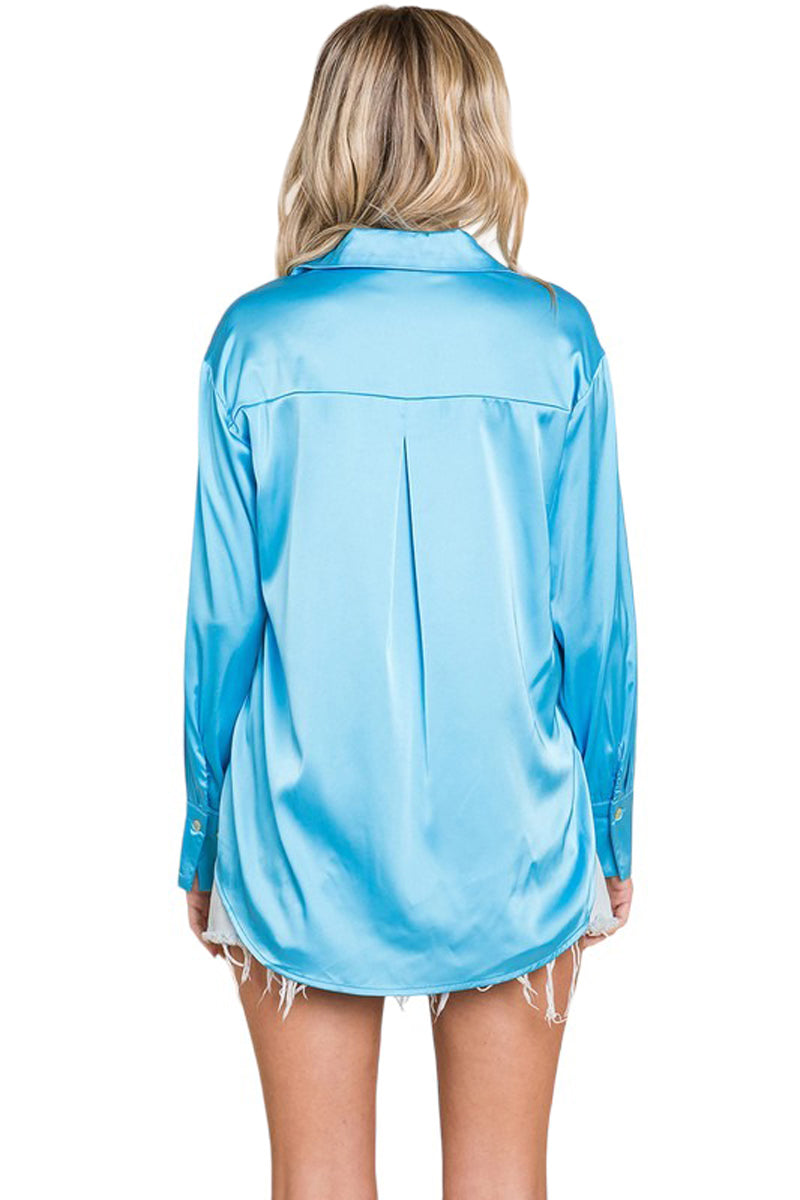 - Features: V-neckline, button down, cuffed long sleeves, high-low hem, collared shirt, soft and silky fabric