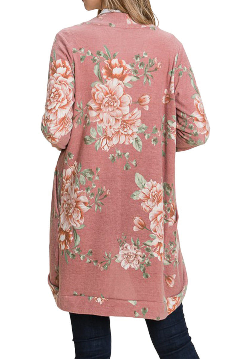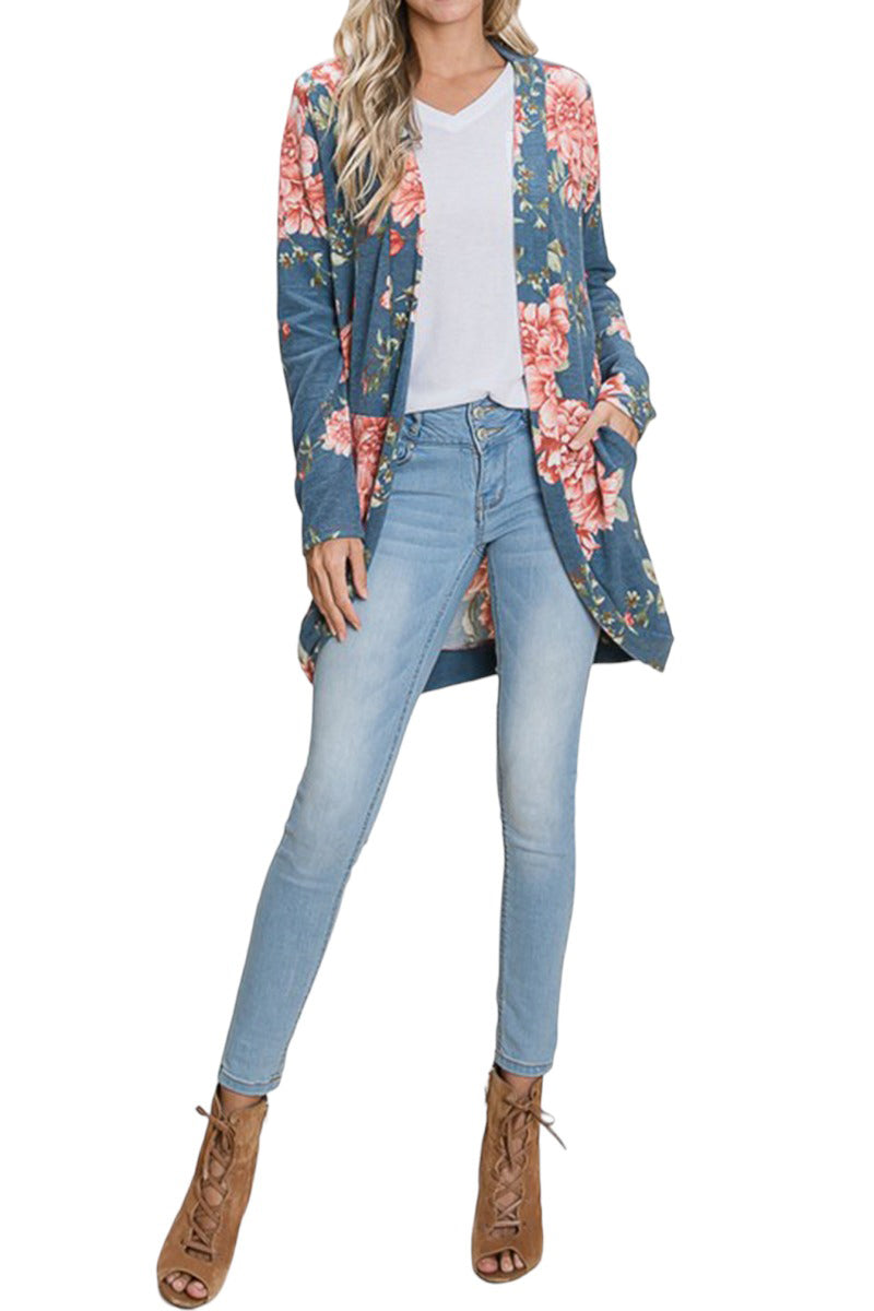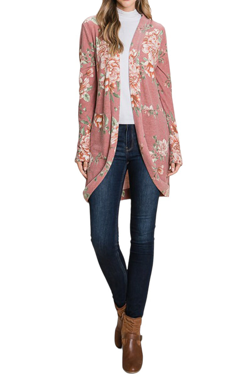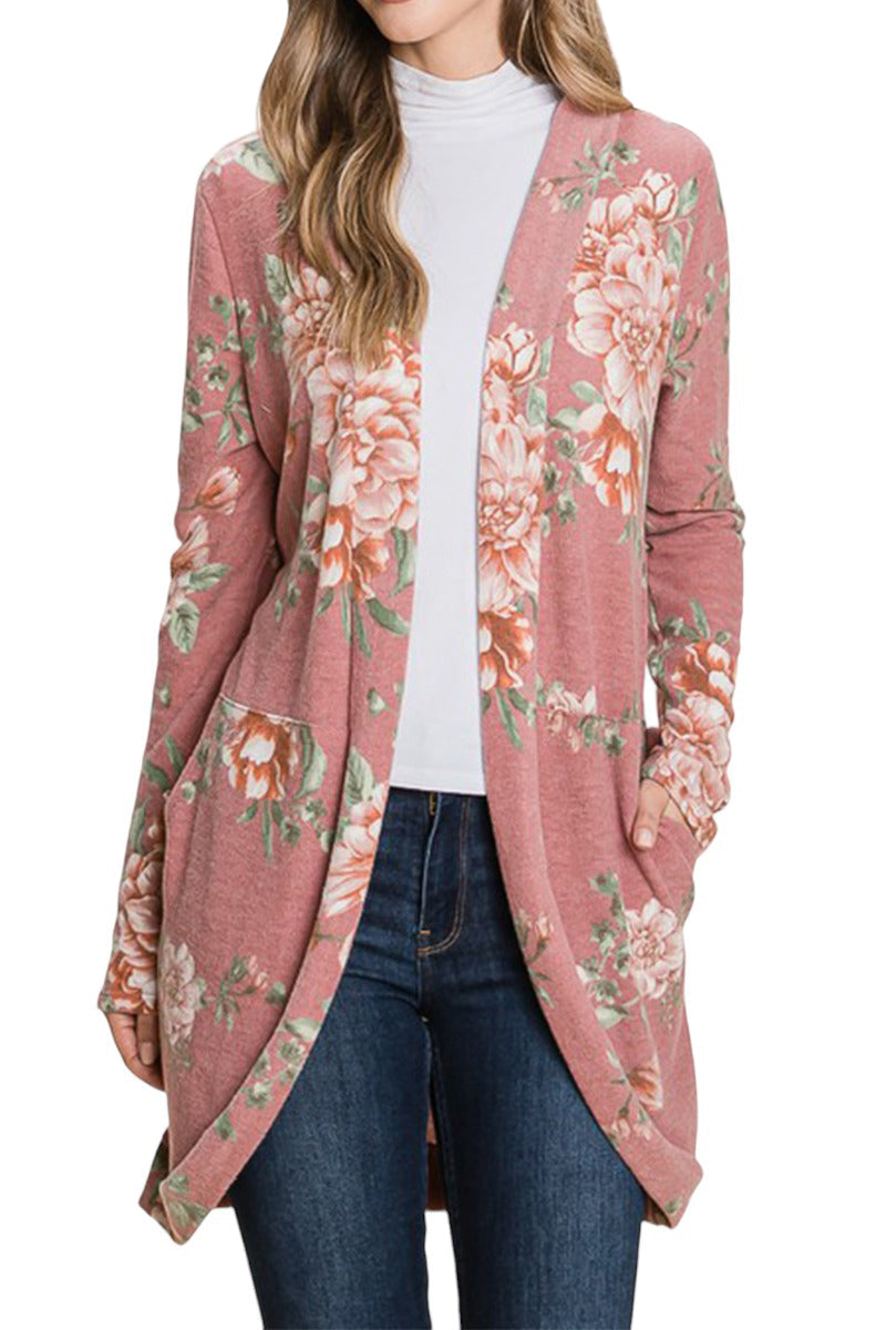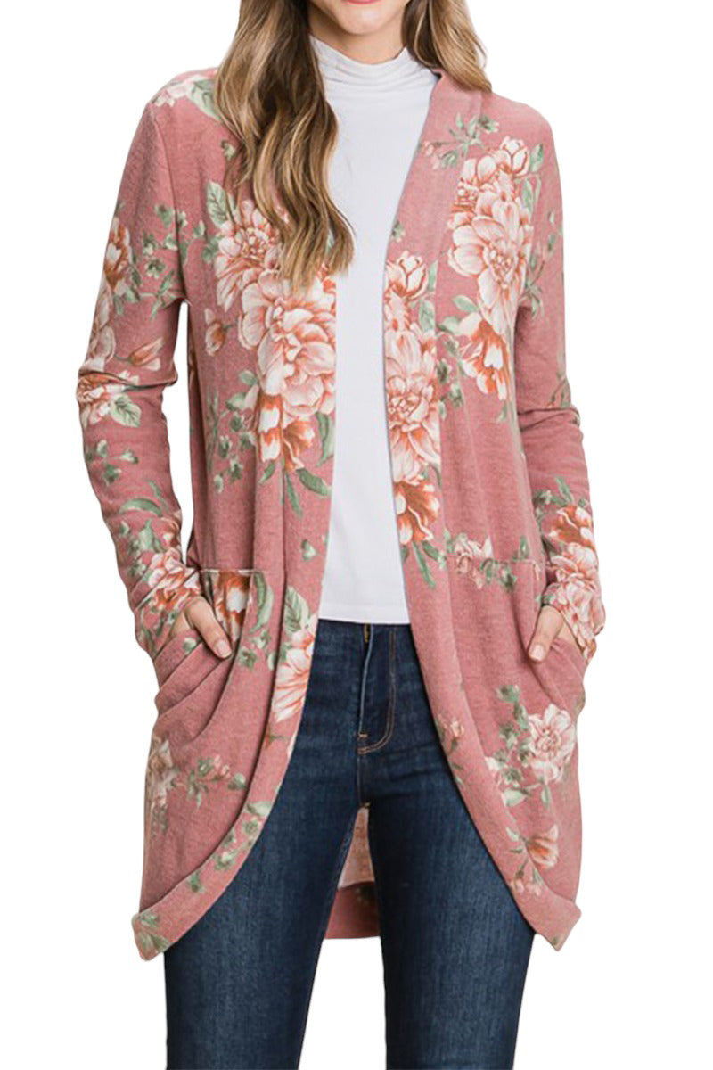Floral Print Cardigan with Pockets