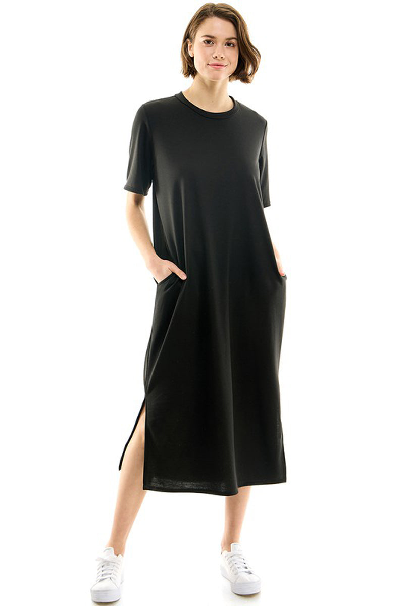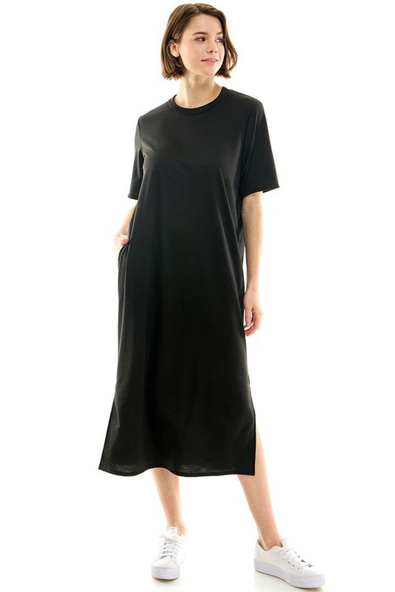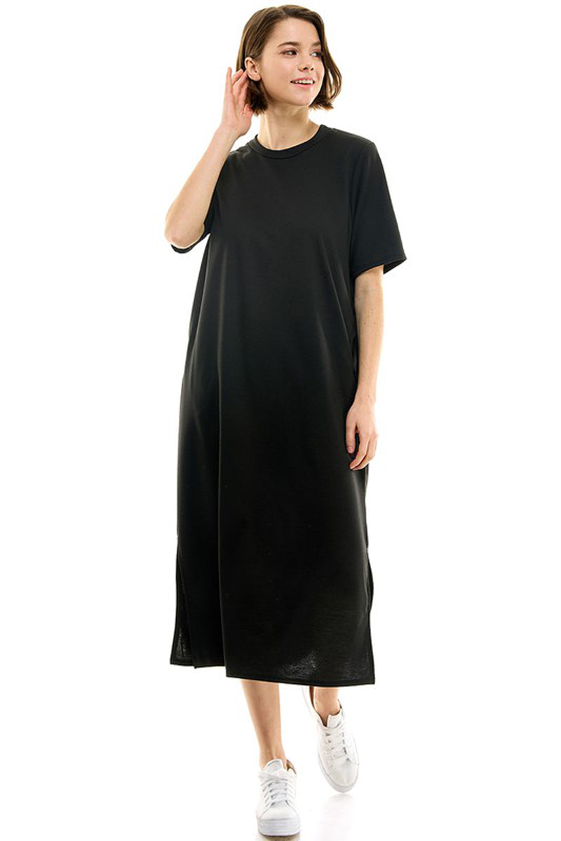 Style yourself an easy-breezy look that you can easily take from lunch to the lounge by adding the French Terry T-Shirt Dress with Slits to your closet. Pair it with oversized sunglasses and lace-up sneakers and you're ready to go.
