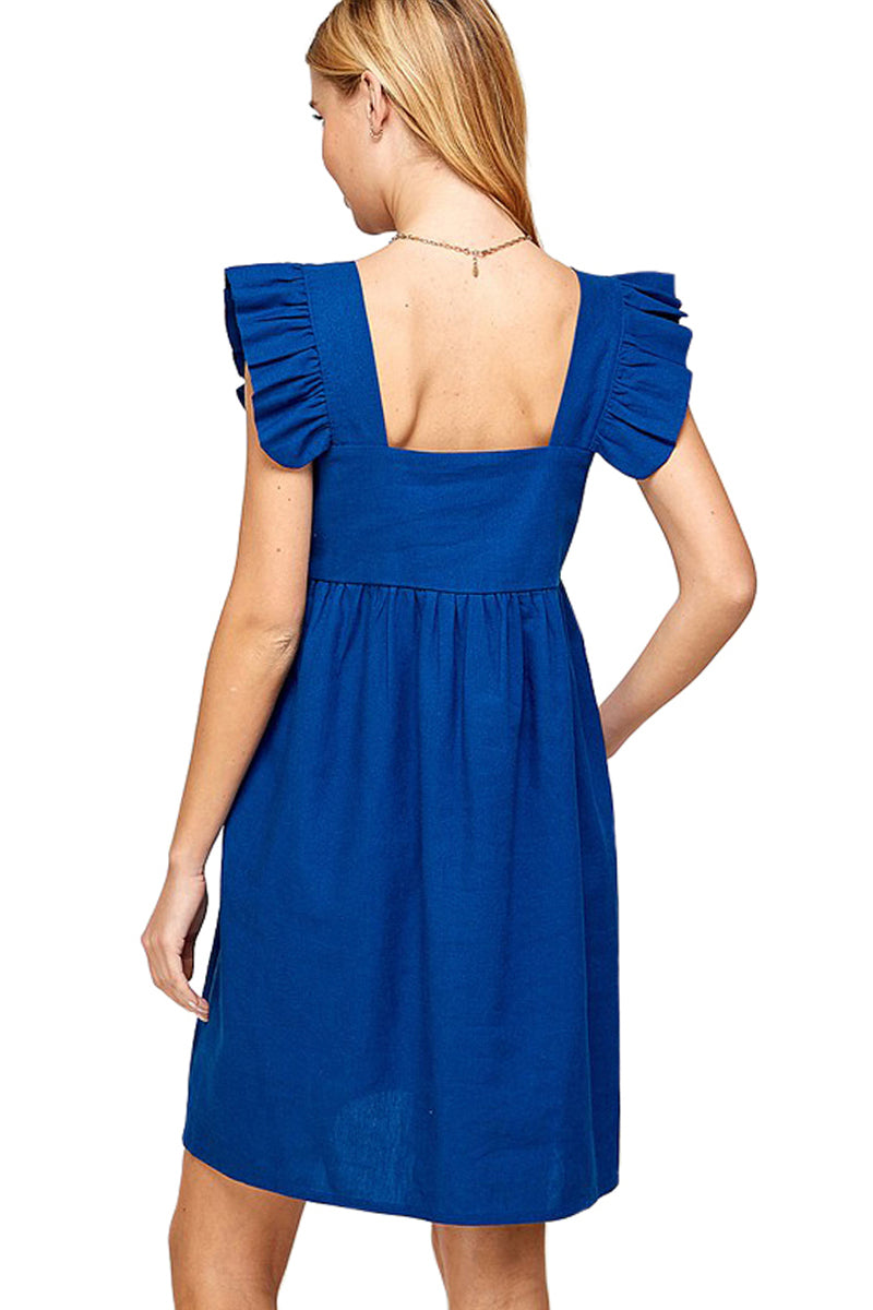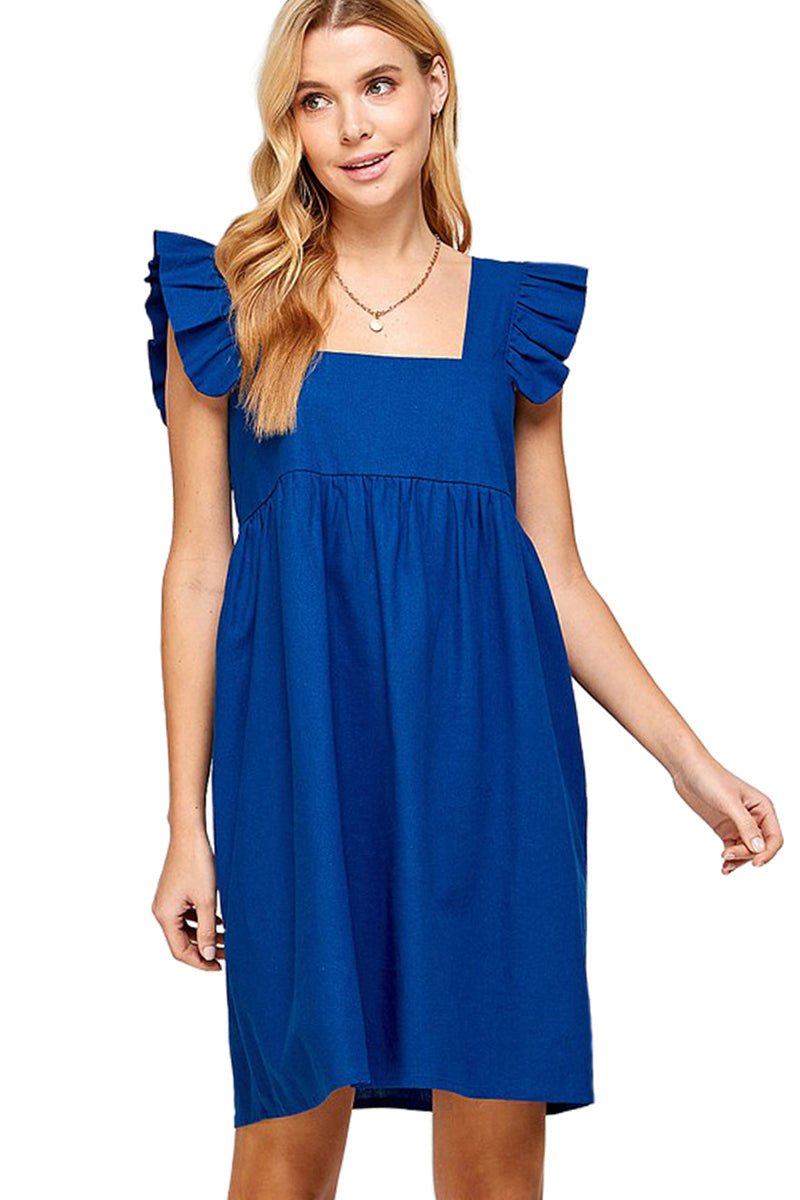 The Linen Baby Doll Dress is the perfect piece to wear on a walk at the beach or grabbing brunch with your friends. The ruffle detail on the sleeve offer a chic and on-trend look, while the sleeveless style and at-knee length help keep you cool and provide a casual, laid back look. Pair with sneakers, sandals, pumps or booties for a look that is as unique as you.
