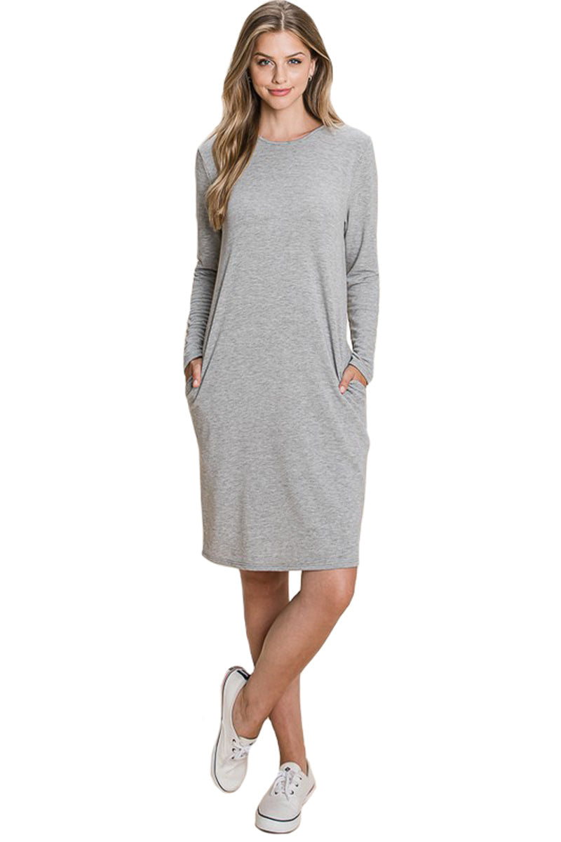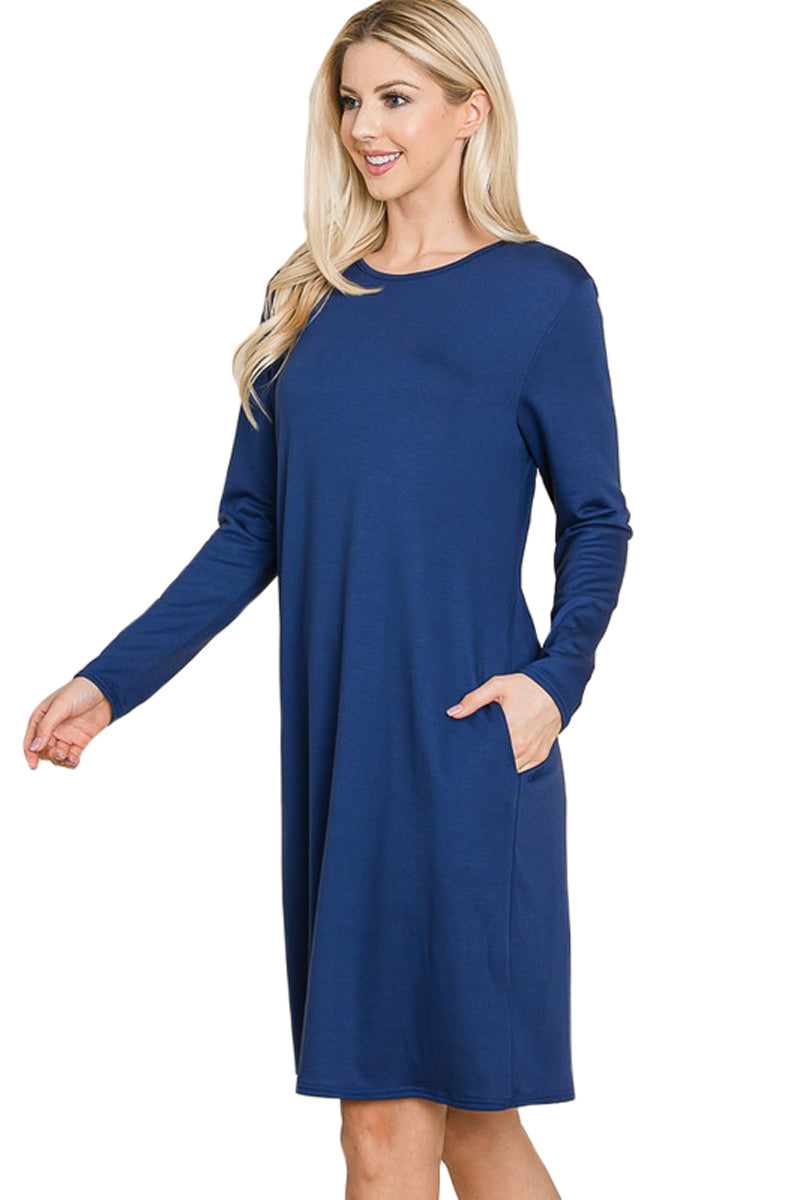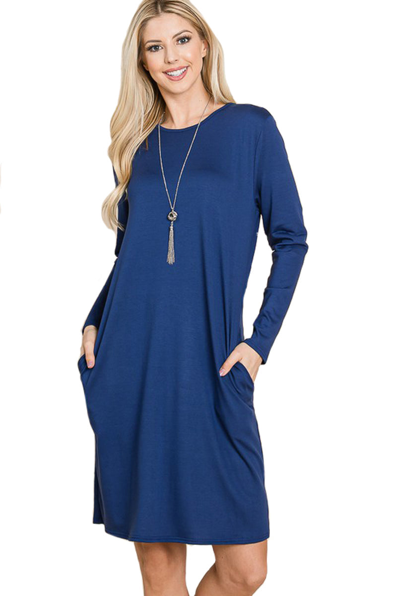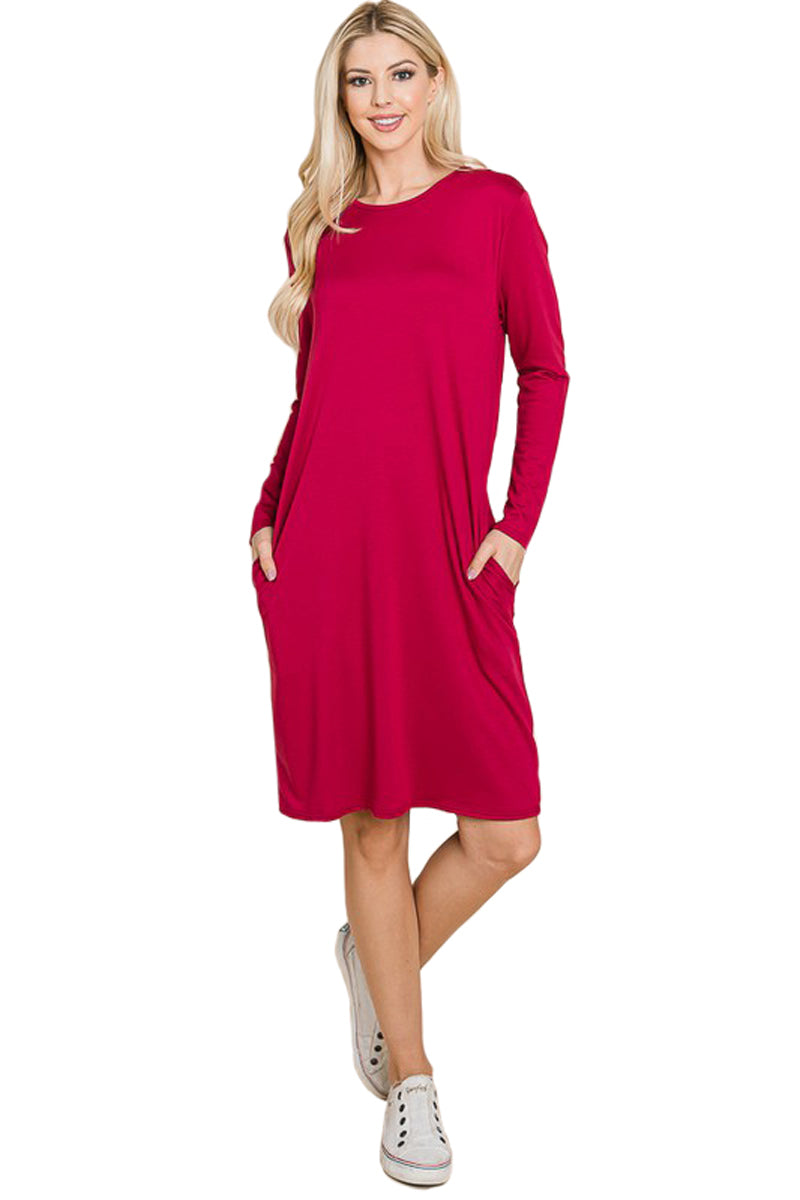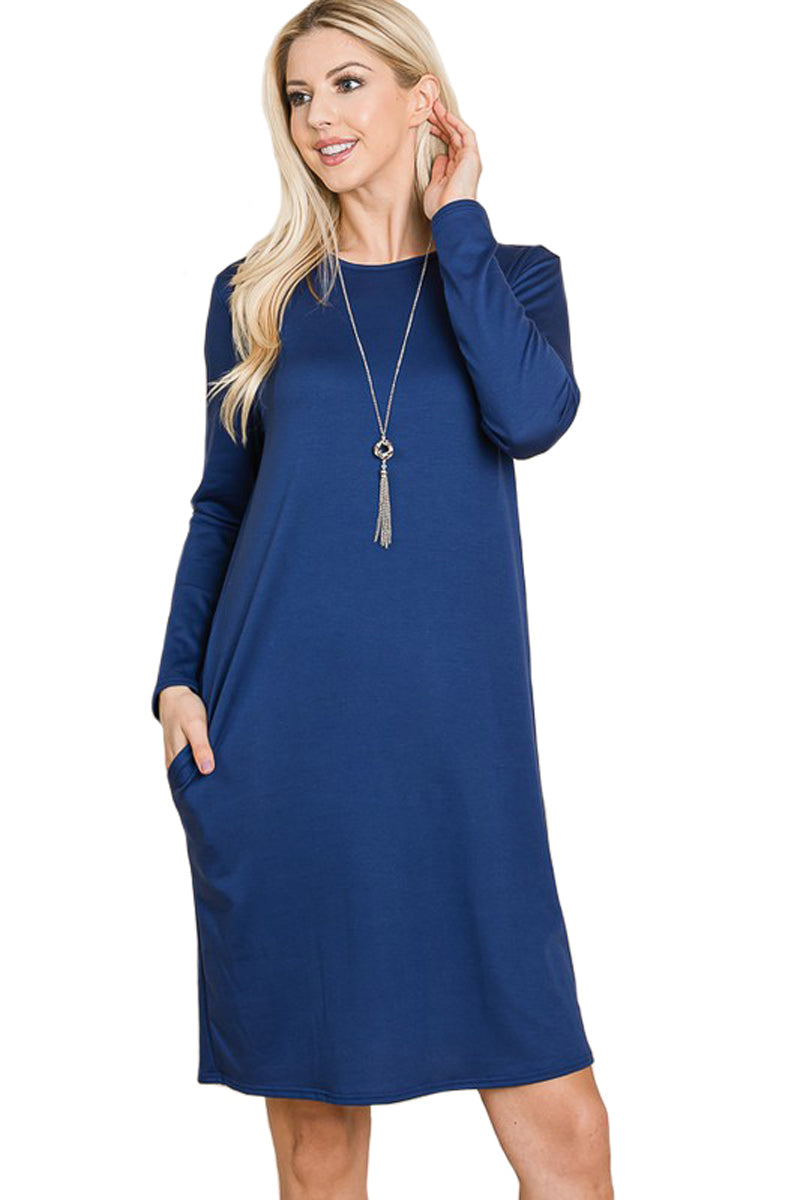 A fall wardrobe must have! This midi dress for women is great for any casual occasion. Featuring a round neckline, long sleeves, midi length hemline and pockets for a finishing touch.