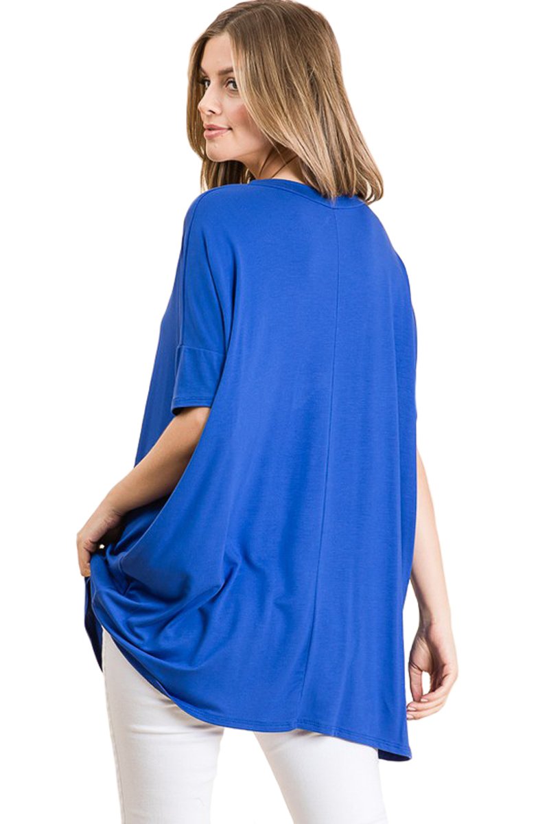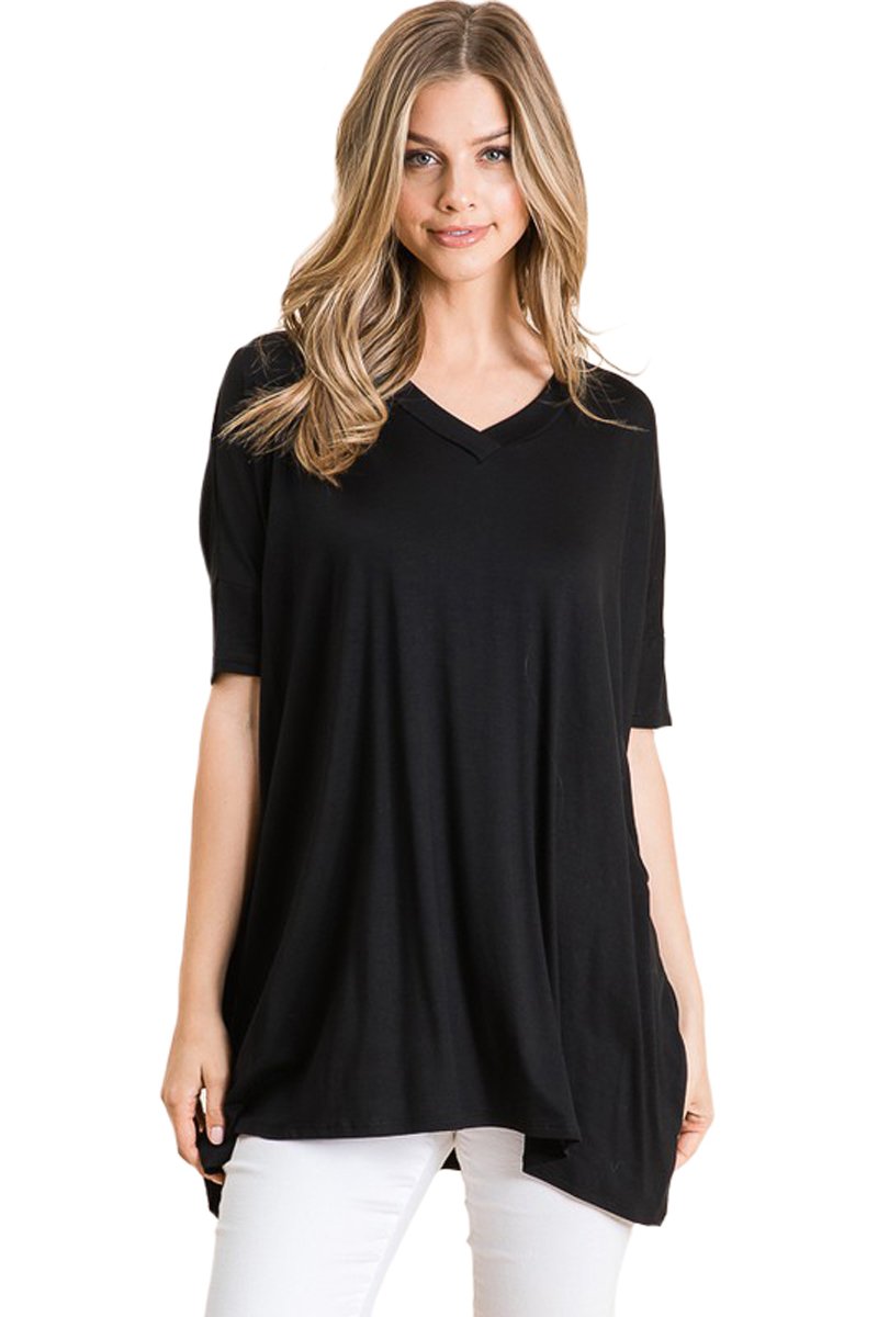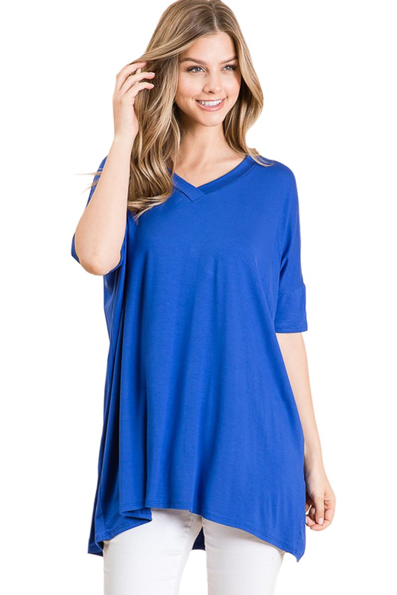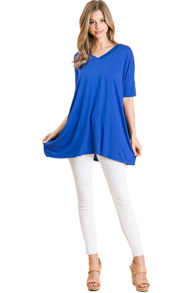 Update your everyday wardrobe with the Loose Fit V-Neck Tunic from Iconic Luxe. Crafted from soft and stretchy fabric with a delightful drape, this pullover top features a V-neckline and half sleeves for a sweet feminine look. Pair it with skinny jeans and sneakers for a comfy-casual outfit, or dress it up with a denim skirt and booties.