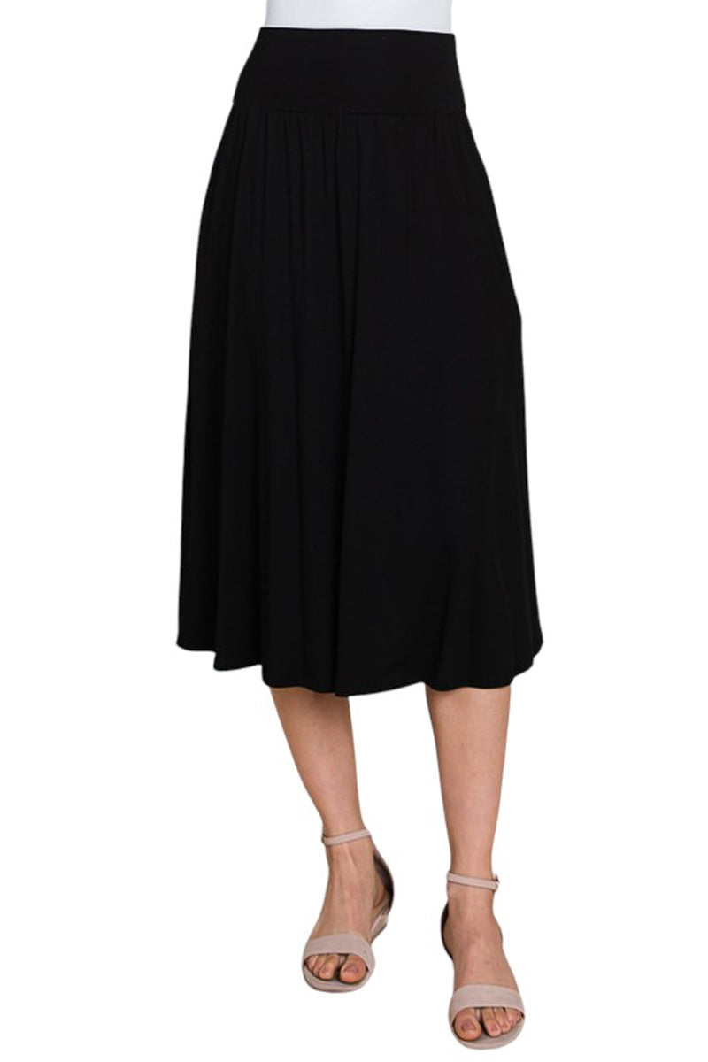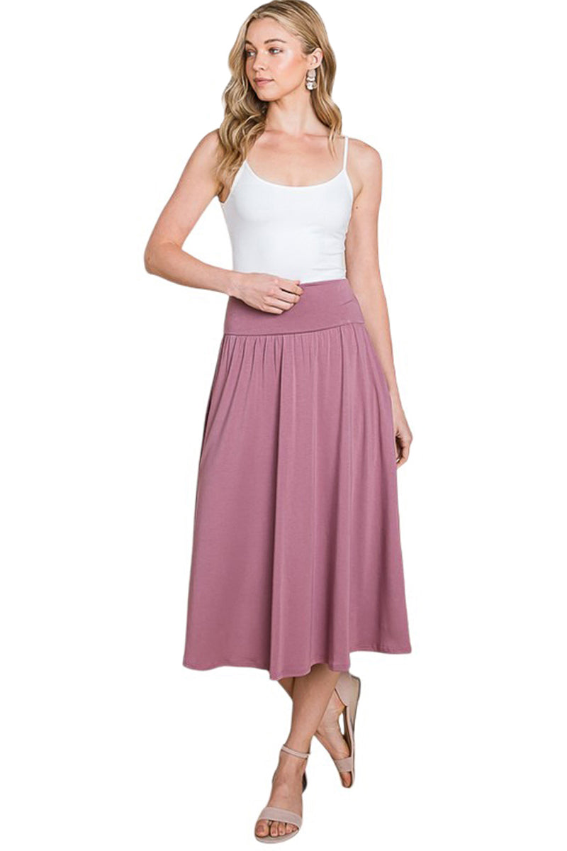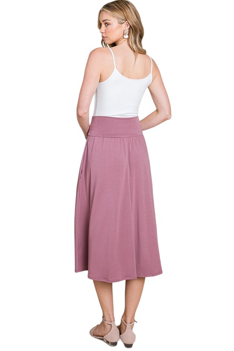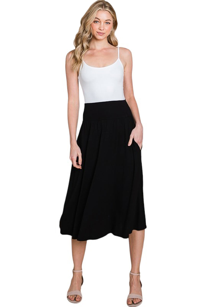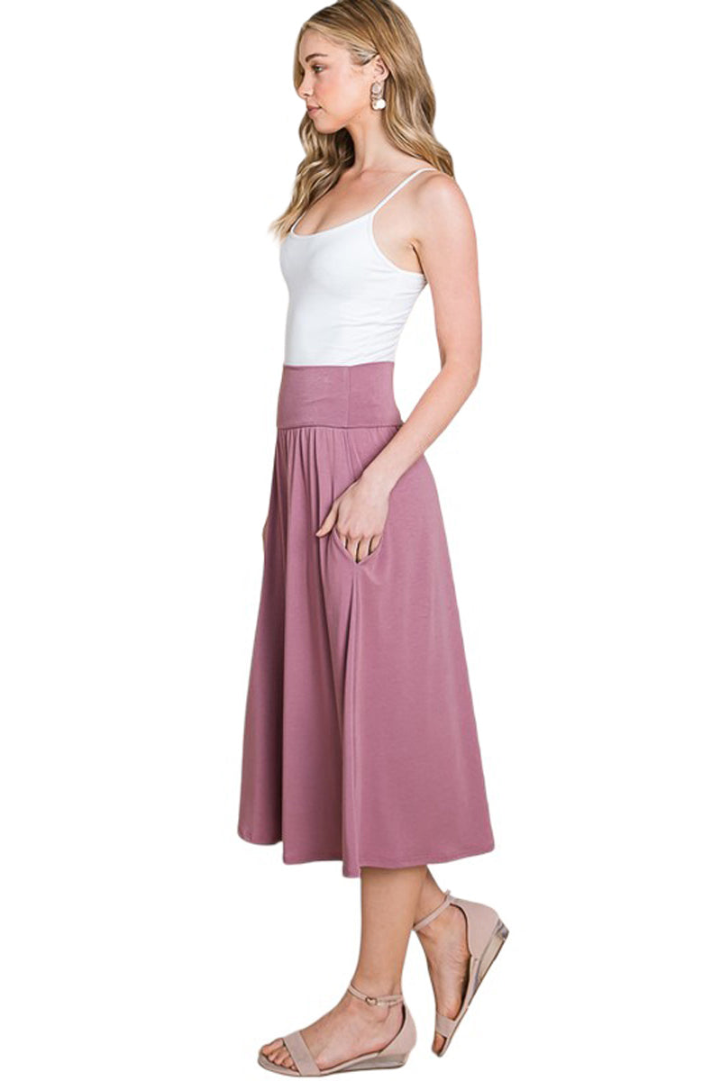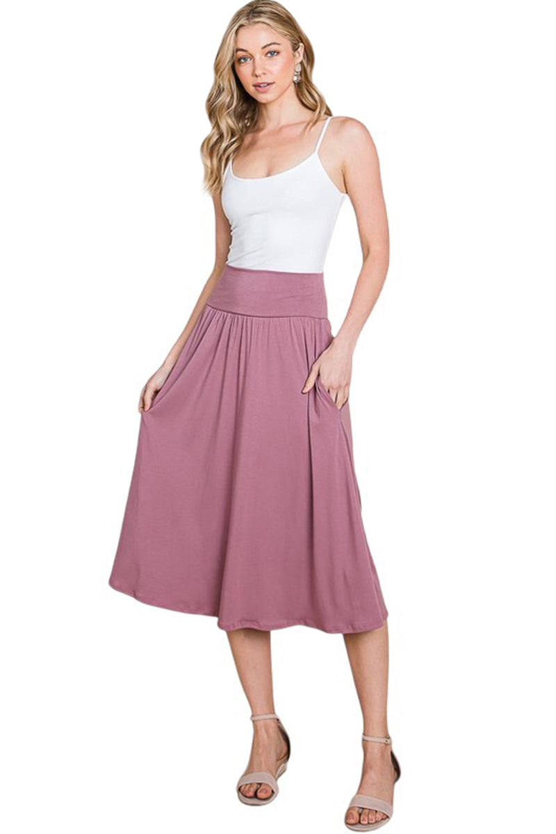Strut or twirl with confidence in this light and breezy flared Midi Length Skirt with Pockets from Iconic Luxe. Perfect for keeping cool on a hot summer's day or for adding a touch of style whether you're off to work or a night on the town, this rayon and spandex skirt is as versatile as it is alluring. Pair with any sandals to create variety of looks.