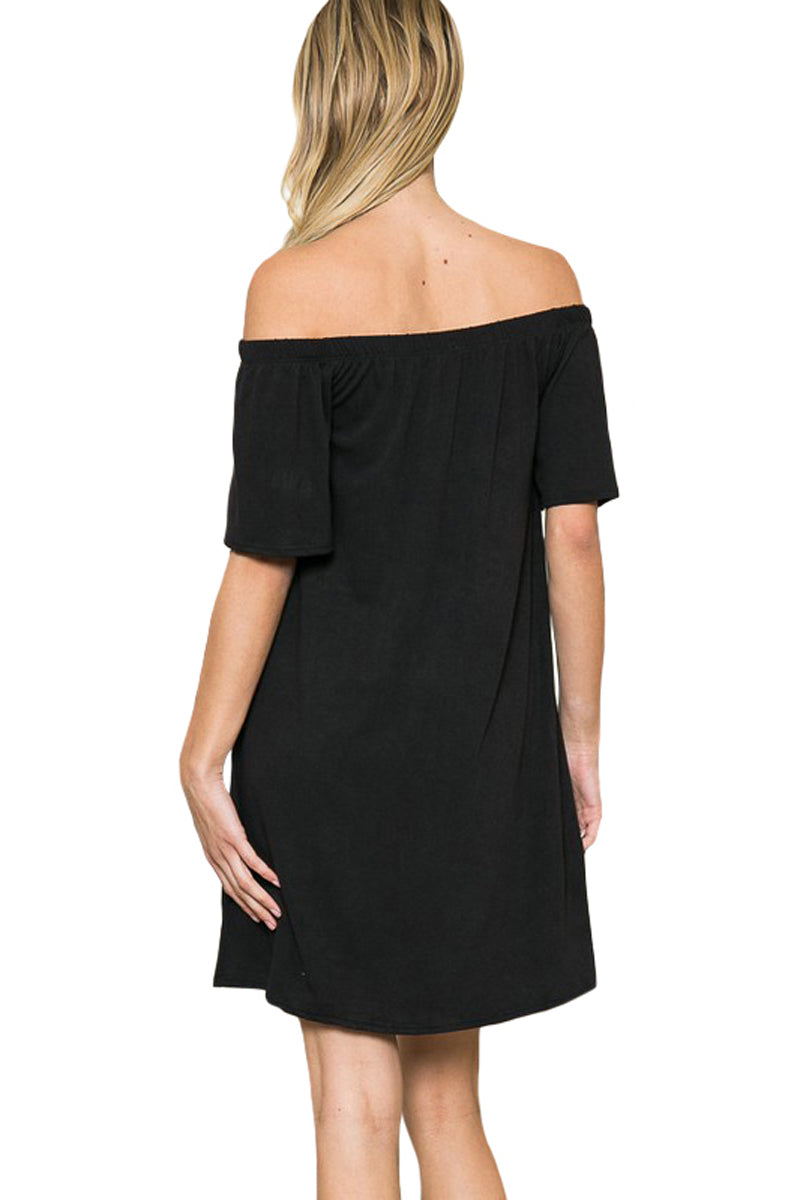 - Features: elastic off-shoulders, half sleeves, A-line silhouette, knee length