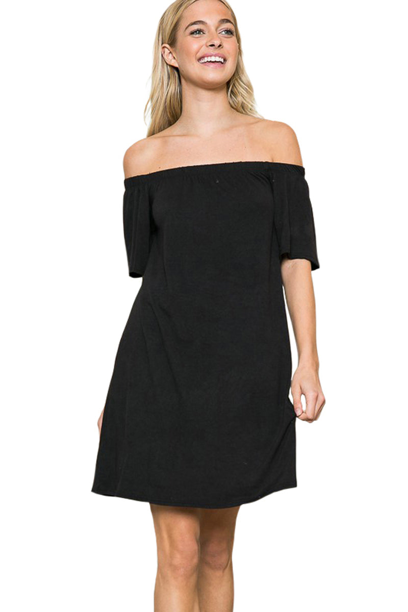 A relaxed and stylish fit, this Off-Shoulder Half Sleeve Dress from Iconic Luxe is a semi-casual look that's great for hosting seminars to running errands. Reaching above knee length, this dress features versatile sleeves for either an off-the-shoulder or both short sleeve look and a shift silhouette.