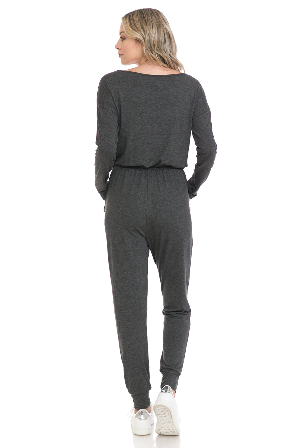 Jumpsuit is made of jersey knit (95% Rayon, 5% Spandex)